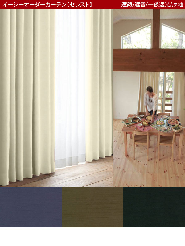 選べる4色 セレスト 1枚 幅:〜100cm 丈: 〜115cm イージーオーダーカーテン 遮熱 遮音 一級遮光 厚地 1枚(代引き不可)【送料無料】