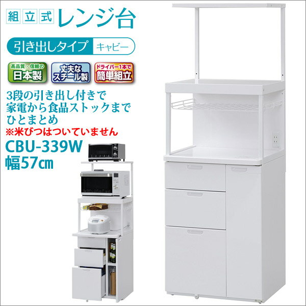 【メーカー直送】エムケー精工 レンジ台 キャビー(幅57cm) ホワイト CBU-339W キッチンラック レンジボード キッチン収納