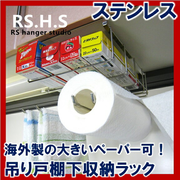 吊り戸棚下ラック ラップホルダー キッチンペーパーホルダー 大 ふきん掛け【日本製】【18-8ステンレス製】コストコ ふきんかけ ふきんスタンド ふきん 掛け ハンガー スタンド 布巾掛け 吊り下げ 収納 ラック