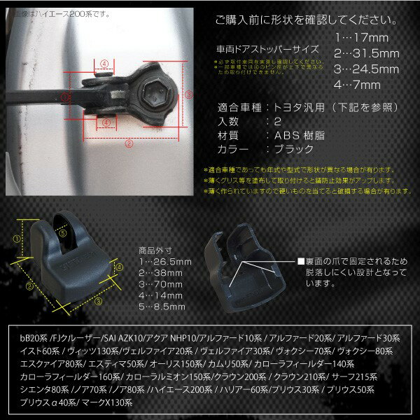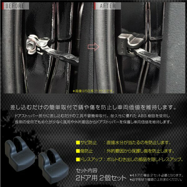 商品名ドアストッパーカバー/ノア70系簡単取付でドアストッパーを錆や傷から守るカバー。
